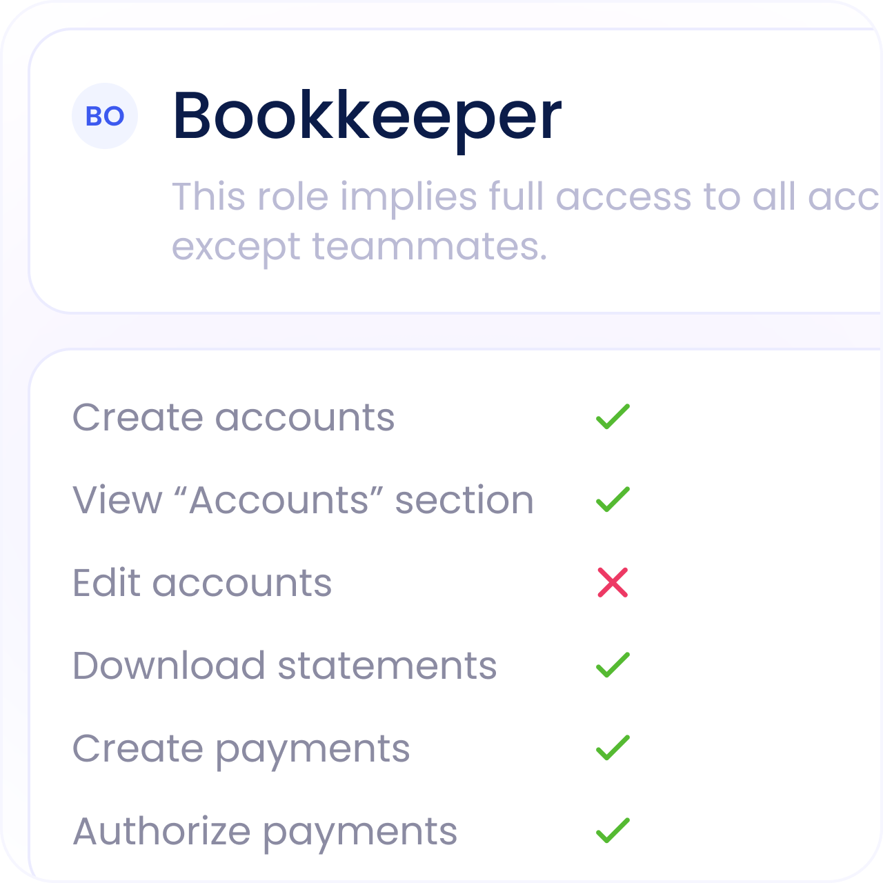 Permissions are assigned per account, so teammates only see and operate what’s relevant to their role.