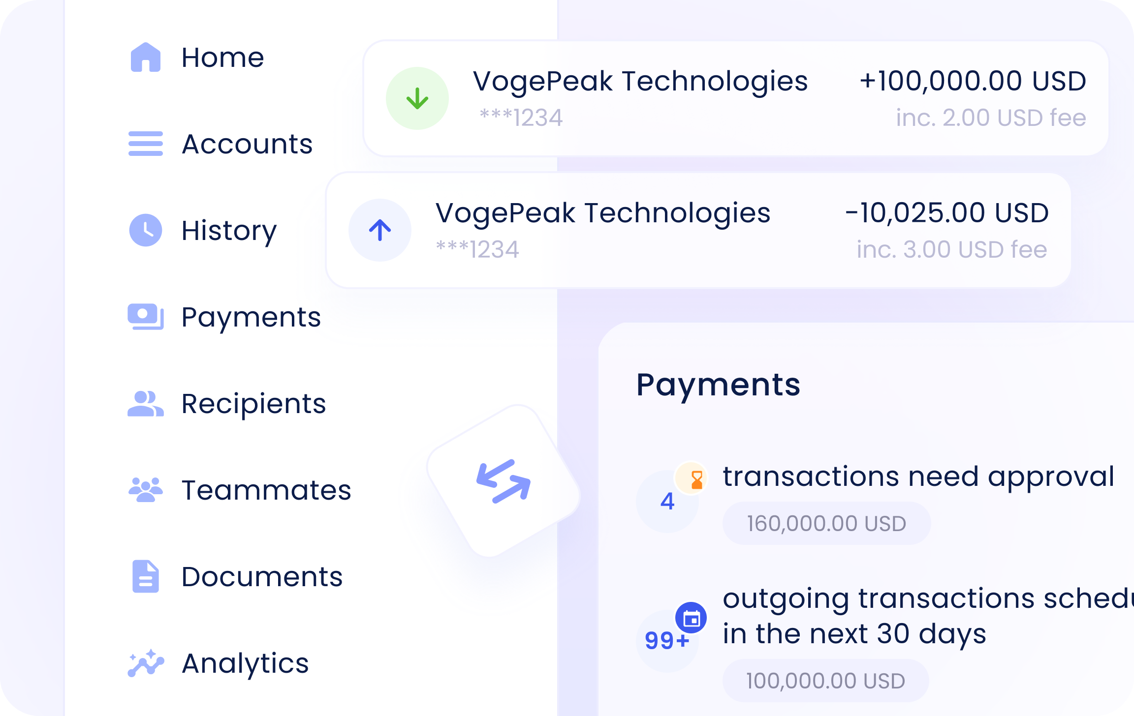 Open USD and multi-currency accounts, manage multiple entities, pay globally,