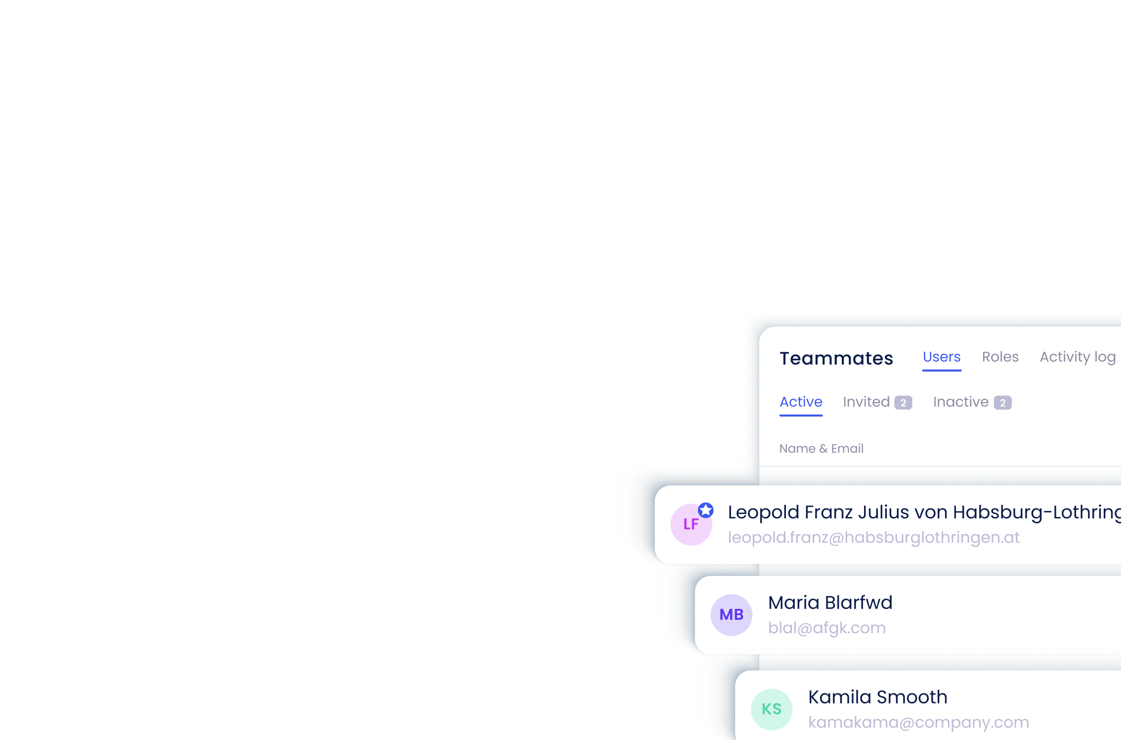 Invite teammates quickly. Assign roles and control permissions with ease.