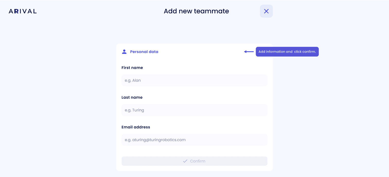 b. For Teammates tab: click “+” and choose “New teammate” and fill out the teammate’s details