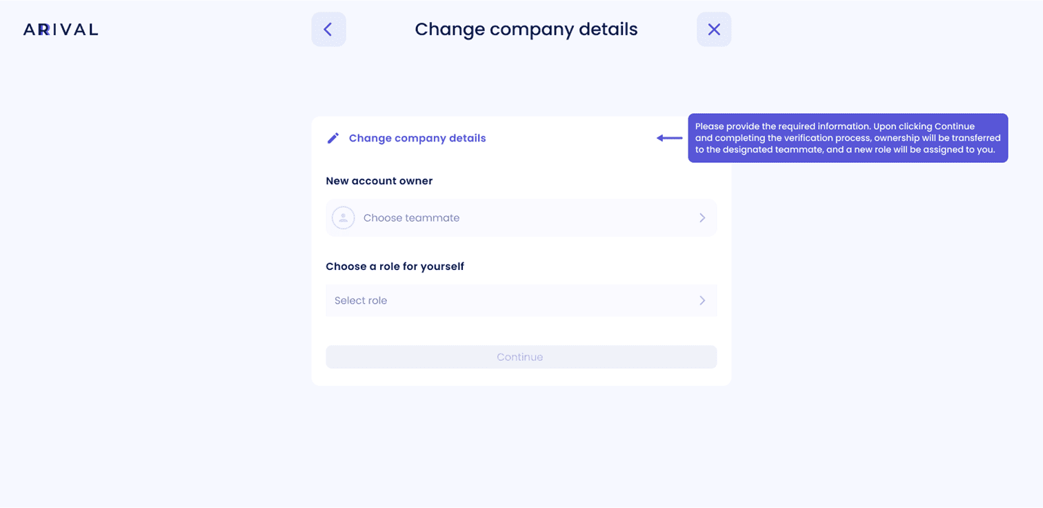 Go to the Company account tab of the Settings tab. Click "Ownership change request" button as an owner